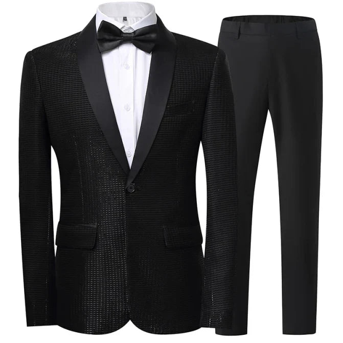 Opgrader din garderobe med Albert Sequin Tuxedo Set – den perfekte måde at tilføje glimmer og glamour til din næste event.